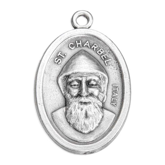 Saint Charbel Oval Antiqued Silver Oxi Medal
