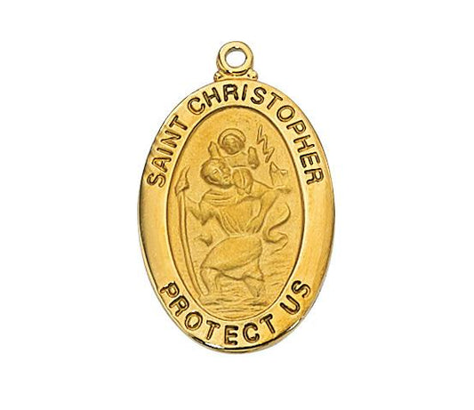 Gold over Sterling Silver St. Christopher Medal 1"x 5/8" with chain