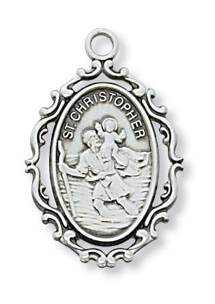 Sterling Silver St. Christopher Medal 5/8" with Chain
