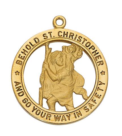 Gold over Sterling Silver St Christopher Medal (1") on 24" Gold Plated chain