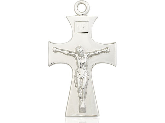 Sterling Silver Celtic Crucifix Pendant on a 24 inch Light Rhodium Heavy Curb Chain