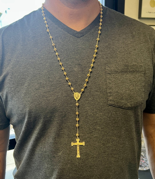 Yellow Gold Plated Holy Face of Jesus Rosary Necklace