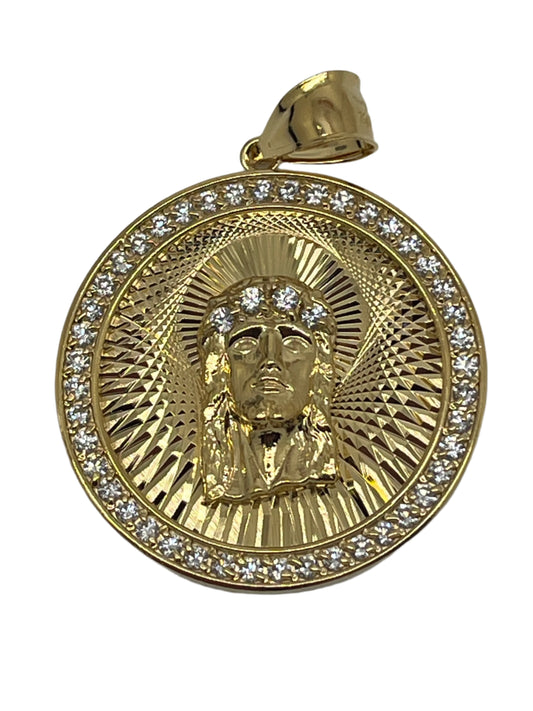 Gold Plated Bronze Holy Face of Jesus Pendant 1 1/4"