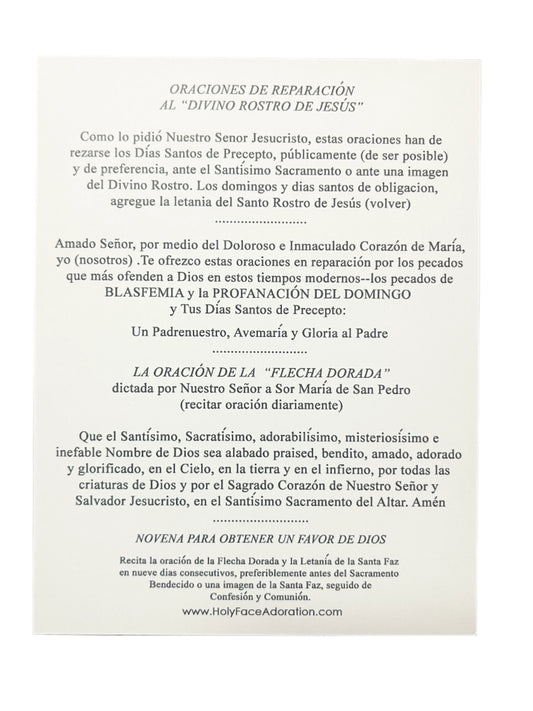Impresión del Santo Rostro de Jesús (Tarjeta de Oraciones) 5 1/2" x 4 1/4"