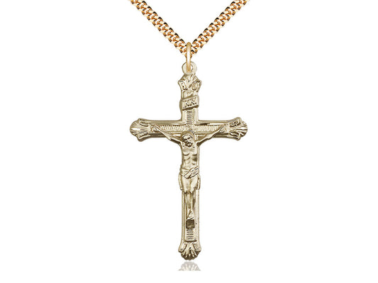 14kt Gold Filled Crucifix Pendant on a 18 inch Gold Filled Light Curb Chain.
