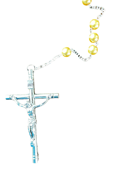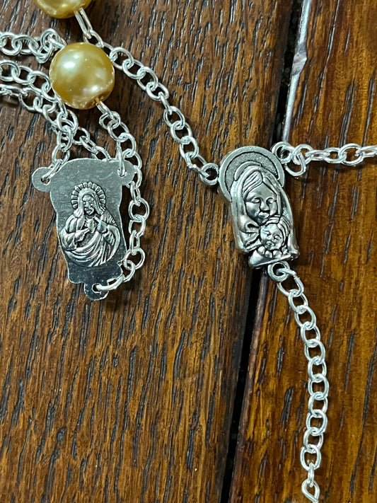 10mm Gold Faux Pearl Lasso Rosary - Rosario Laso