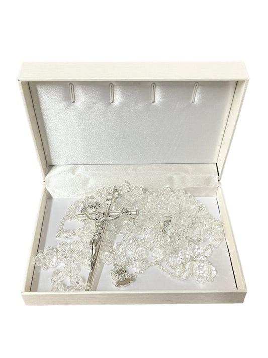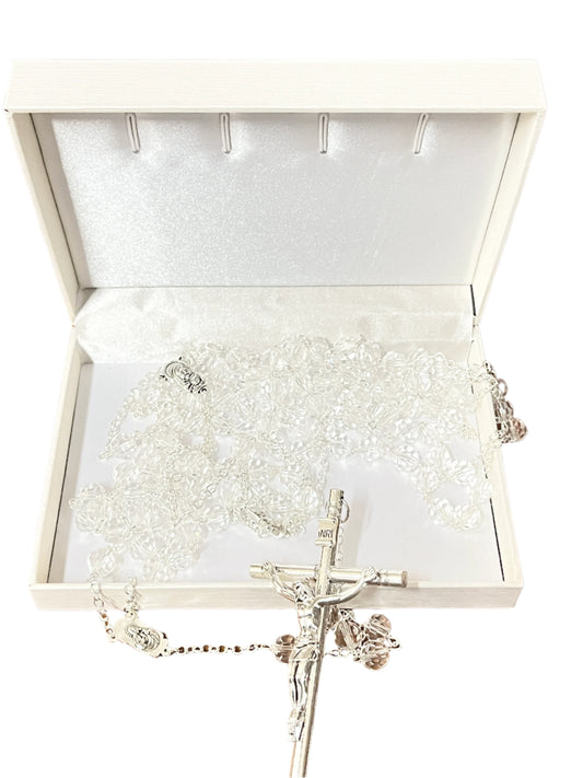 Clear Crystal Lasso Wedding Rosary with Silver-tone Accents 10MM