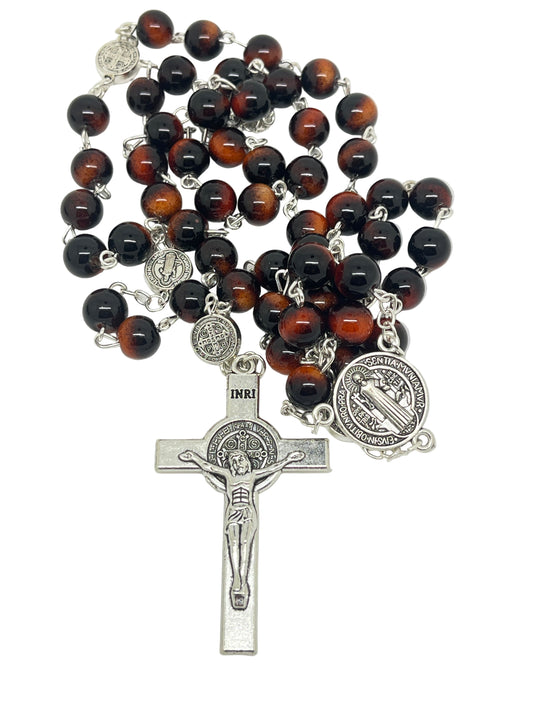 Sacred Heart Sterling Silver Brown Wood Rosary 6mm