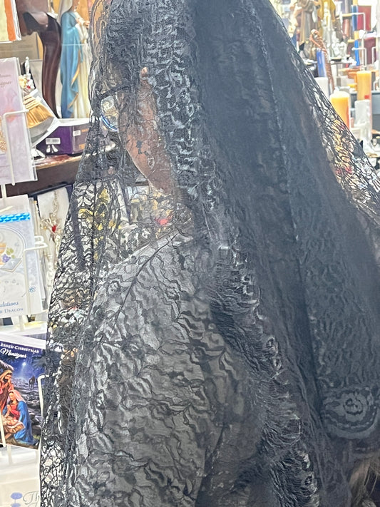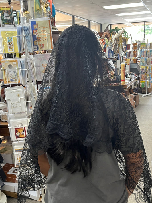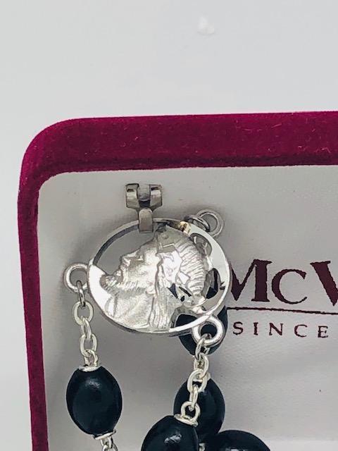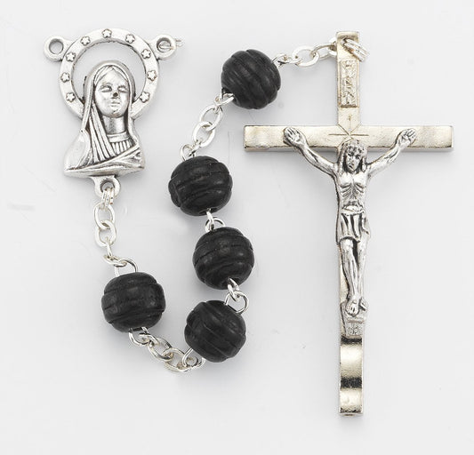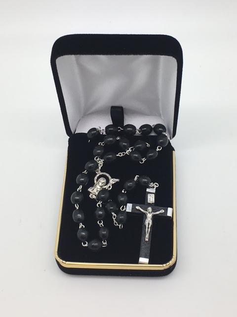 Black Wood Rosary with Crowned Madonna Centerpiece and Wood and Metal Crucifix (7mm)