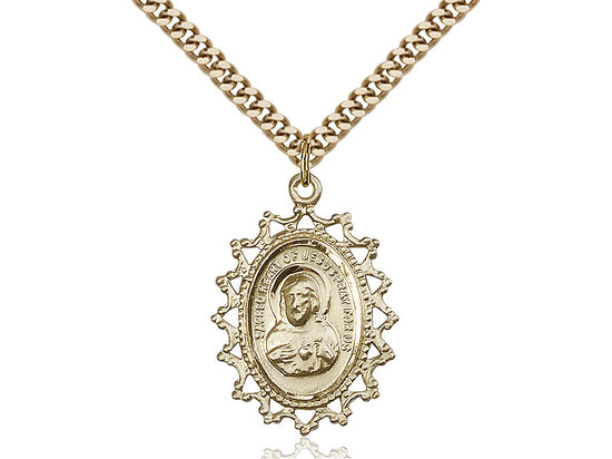 ·This beautifully crafted 14kt gold-filled Scapular Medal is a timeless symbol of faith and devotion. Measuring 1 inch tall by 3/4 inch wide, it hangs gracefully on a durable 24-inch gold-plated heavy curb chain. The elegant design ensures both spiritual significance and everyday wearability. A meaningful gift or personal keepsake for those seeking divine protection.