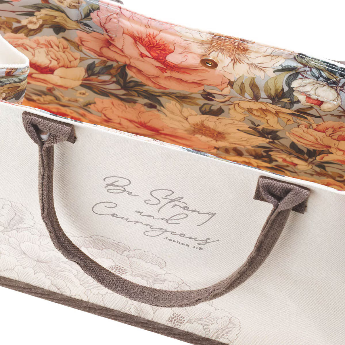 Be Strong and Courageous Floral Canvas Tote Bag - Joshua 1:9