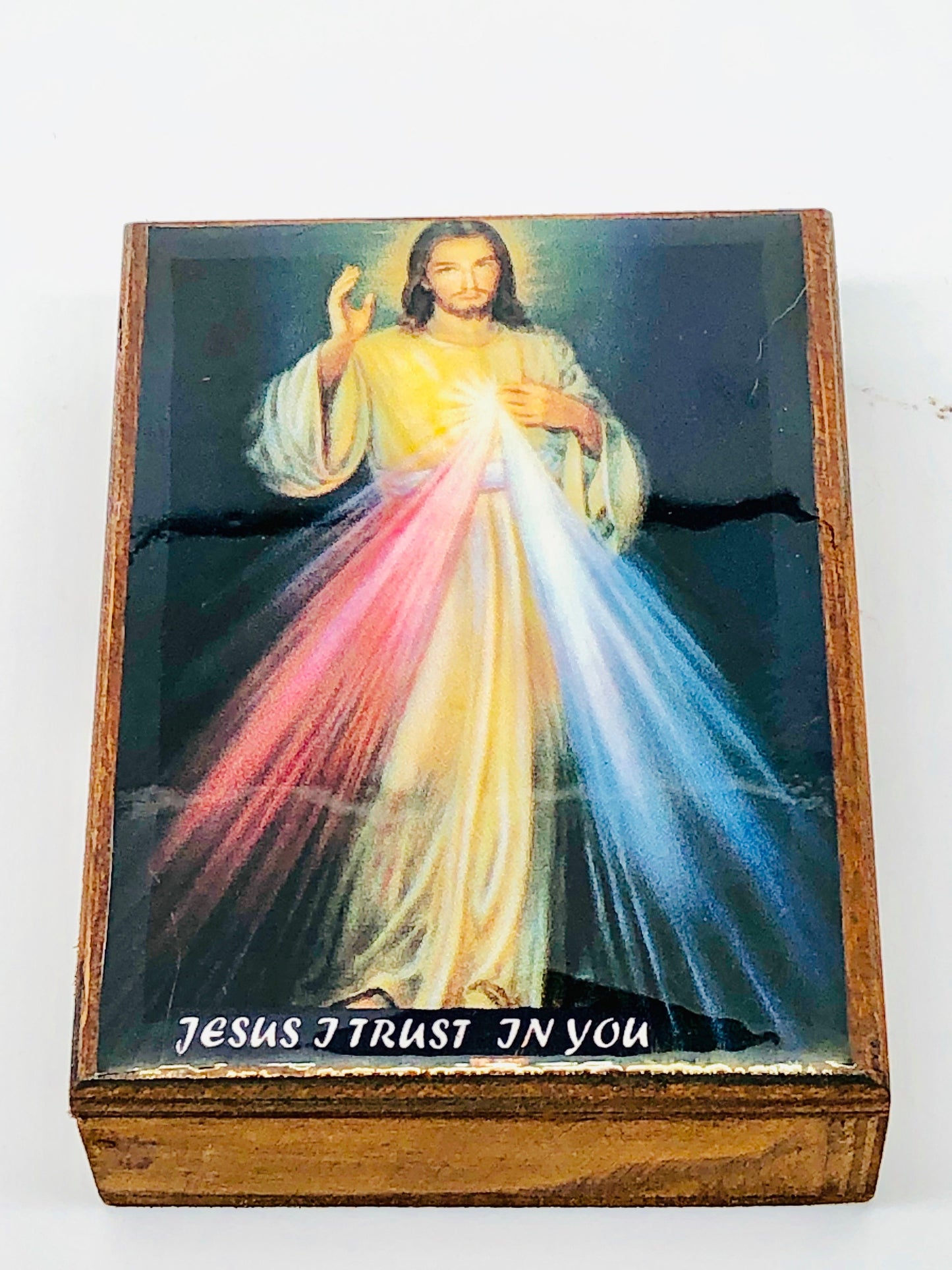 Divine Mercy Wood Rosary Box with Wood Rosary