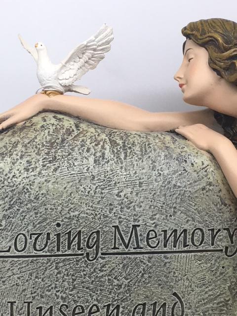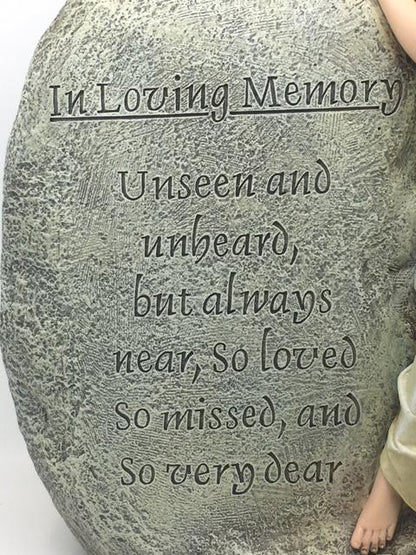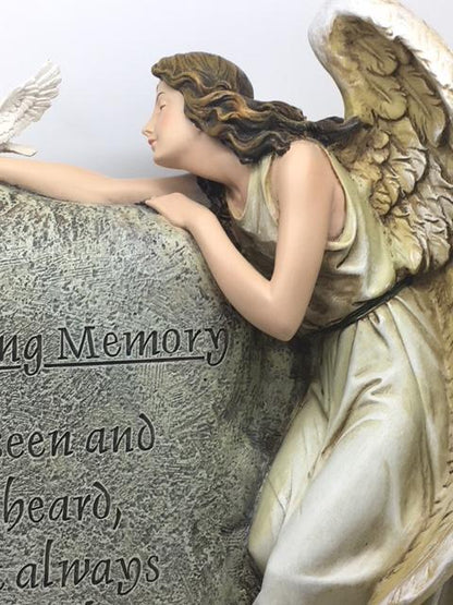 Honor the memory of a loved one with this beautiful angel statue resting on a memorial stone. Thoughtfully designed to bring comfort and peace, it serves as a touching reminder that those we love live on in our hearts.