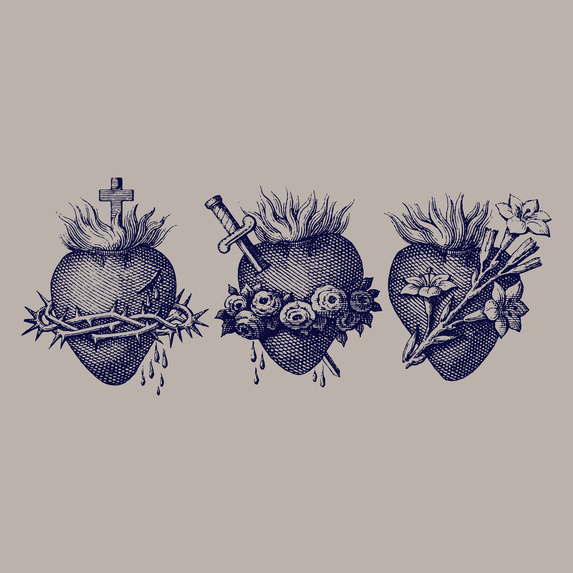 Show Your Faith with the Holy Family Hearts Women's Tee! This beautiful women's tee features a cherished symbol of Catholic devotion - the Three Hearts of the Holy Family. A Timeless Symbol of Love: The design showcases the Sacred Heart of Jesus, the Immaculate Heart of Mary, and the Most Chaste Heart of St. Joseph, each depicted with rich symbolism: The Sacred Heart of Jesus, encircled with thorns and a cross, represents his sacrifice for humanity. The Immaculate Heart of Mary, pierced with a sword and surrounded by roses, symbolizes her compassion and shared suffering. The Most Chaste Heart of St. Joseph, enveloped in lilies, represents purity and fatherly love. Flames atop each heart represent God's boundless love for us all.