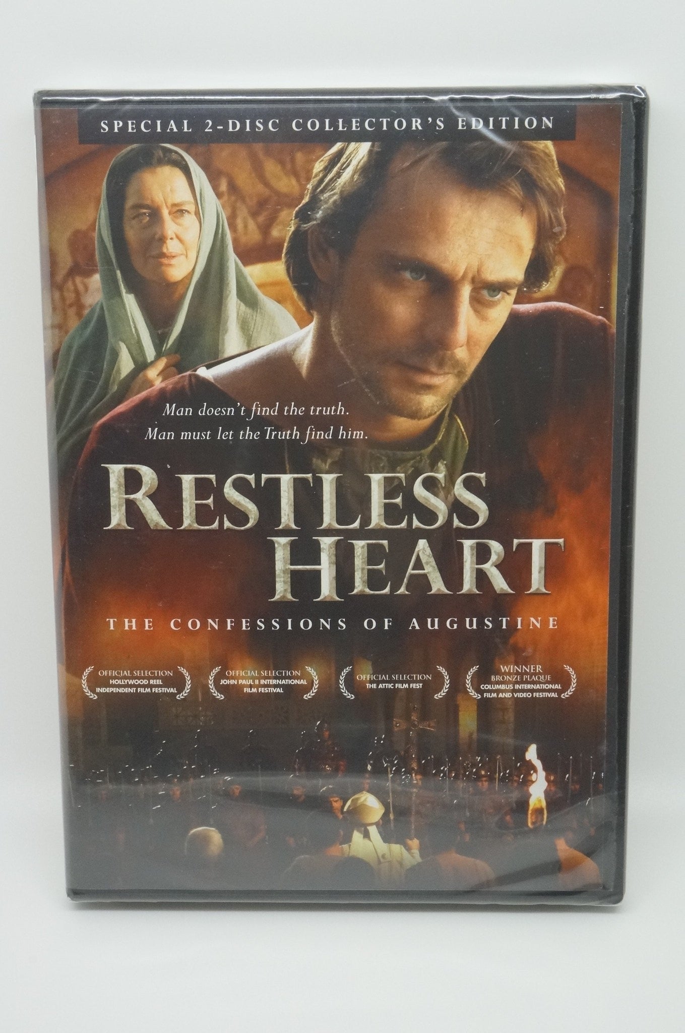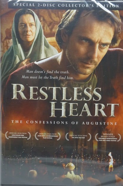 Restless Heart DVD. 2 Disc Collection Edition.   430 A.D.  The Roman Empire is beginning to crumble.  The Vandals and other marauding tribes spill through the gaps in Roman defenses. And one of the greatest saints of the Christian church stands between his flock and the barbarian invaders.  As he attempts to negotiate between the proud Roman authorities and the implacable Vandal king, Bishop Augustine recalls his own life before Christianity...
