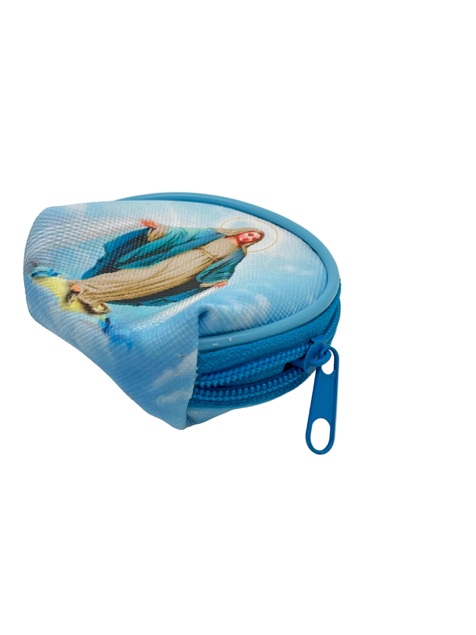 The Our Lady of Guadalupe Rosary Pouch 2 1/2" is designed for storage and transportation of your beloved rosary. With a zipper closure and stylish design, this pouch is perfect for keeping your 2-1/2 inch rosary safe and secure.