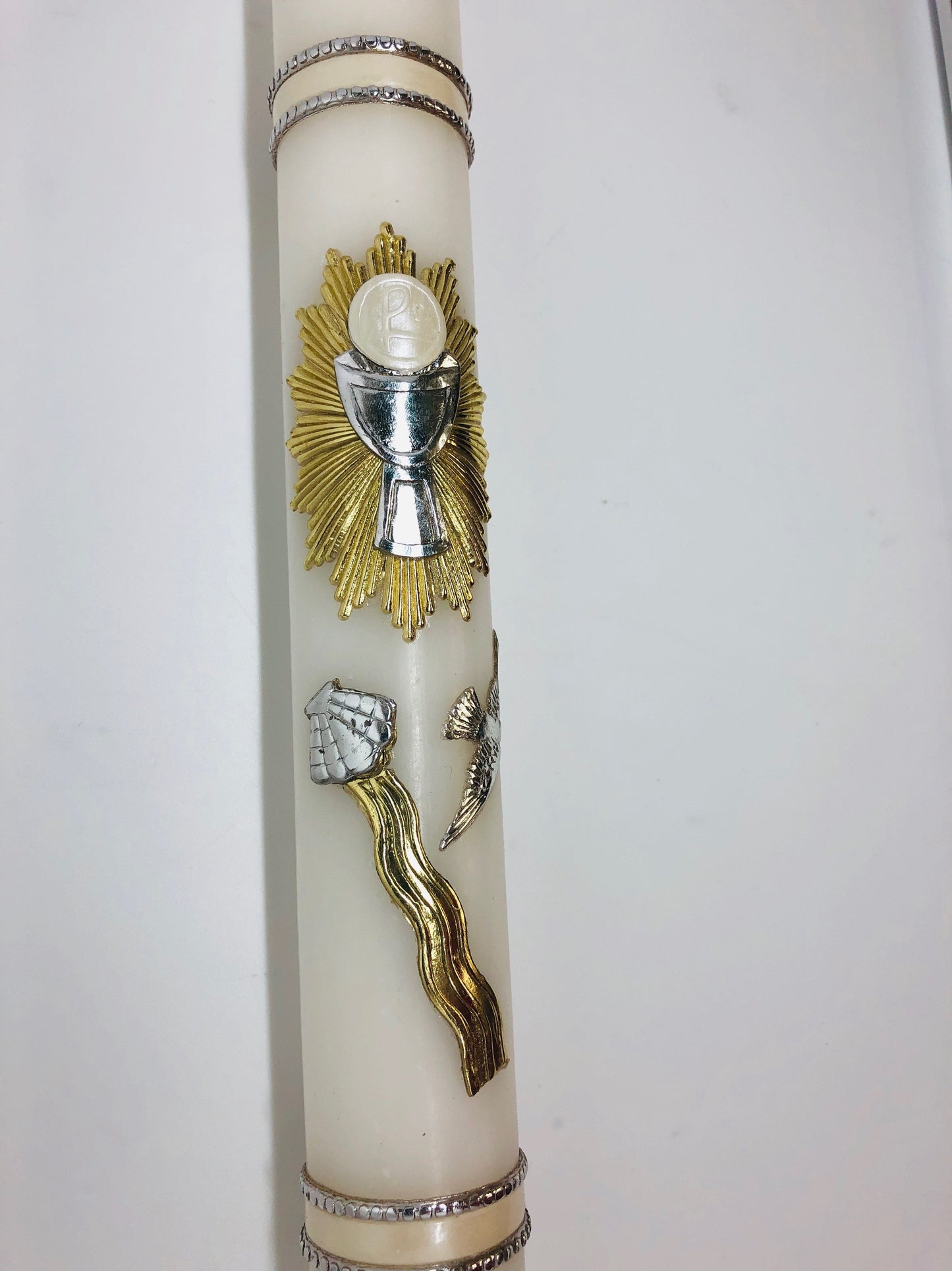 Welcome new Catholics with this specially designed white Rite of Christian Initiation of Adults (RCIA) Candle. The sacramental taper candle is perfect for ceremonial use as well as a commemorative gift. Each RCIA Candle is individually boxed.