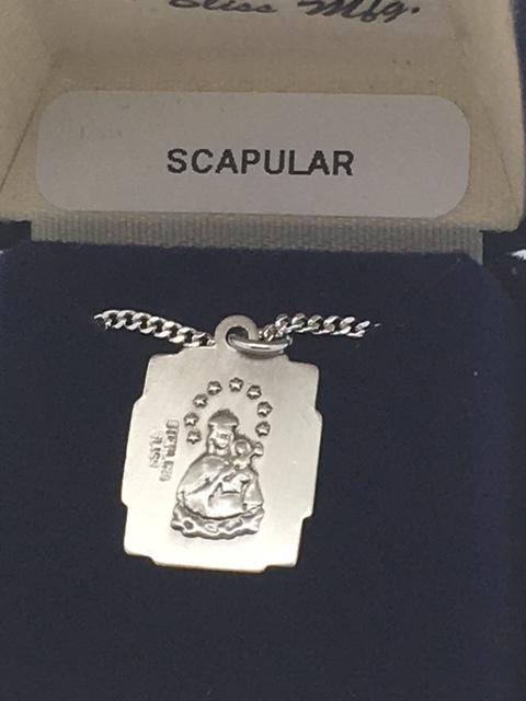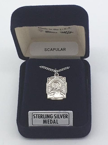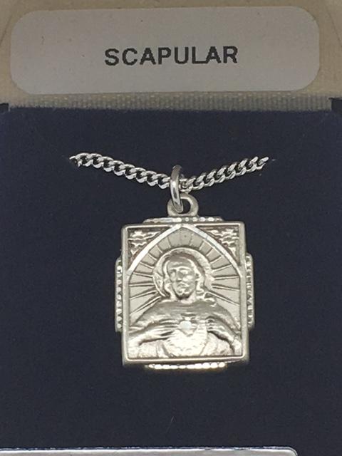 Sterling Silver Scapular Pendant on a 18 inch Light Rhodium Curb Chain