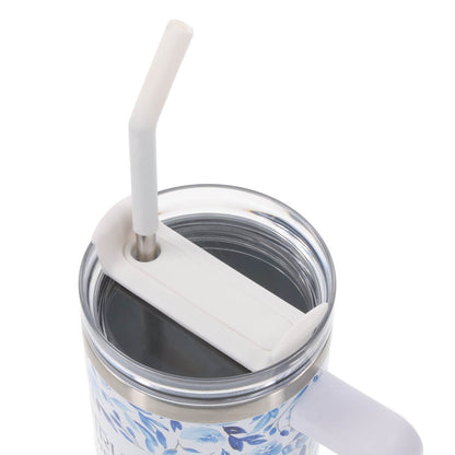 Stay refreshed and carry a daily reminder of God's goodness with you when you bring the Trust in the Lord Blue Botany 40 oz Stainless Steel Travel Tumbler with Straw with you on your daily errands. This generously sized mug is perfect for busy days and long nights that require you to stay hydrated and alert. The tumbler's smooth white exterior features a blue botany decal pattern on the top two-thirds of the body. In the center of this design, the sentient is presented in blue letters. Trust in the Lord Proverbs 3:5 The tumbler has an oversized, wide, white rectangular handle that allows easy holding and a secure grip. A white BPA and phthalate-free plastic screw-on lid has a silicone seal to seal tightly and offers a dial closure with three settings: closed, direct drinking from the opening, or sipping through a straw. The travel tumbler comes with a reusable stainless steel straw with a white silicone tip to protect your mouth from hot liquid. This 40-ounce tumbler will keep you hydrated all day without constant refills. Its double-wall insulation keeps your drinks just the way you like them—hot or cold for up to 24 hours! Crafted from durable stainless steel, this tumbler is built to last and to resist dents and scratches. It has a wide mouth opening that is easy to fill with ice cubes and to clean. The stepped contour of the tumbler allows it to fit in most cup holders. And don't worry about lingering flavors or odors—the stainless steel interior keeps drinks tasting fresh. The Trust in the Lord Blue Botany 40 oz Stainless Steel Travel Tumbler with Straw is part of the Trust Blue Botany Collection. This collection includes a stainless steel tumbler with a reusable straw, a faux leather Bible cover, a canvas tote bag, a faux leather bookmark, and a faux leather checkbook wallet. The Trust in the Lord Blue Botany 40 oz Stainless Steel Travel Tumbler with Straw is a beautiful, practical gift for your Mom on Mother's Day. It also makes a lovely and caring gift to encourage a struggling friend. The Trust in the Lord Blue Botany 40 oz Stainless Steel Travel Tumbler with Straw combines convenience with a heartfelt spiritual message. Para la descripción en Español, utilice nuestro traductor ubicado en la esquina derecha.