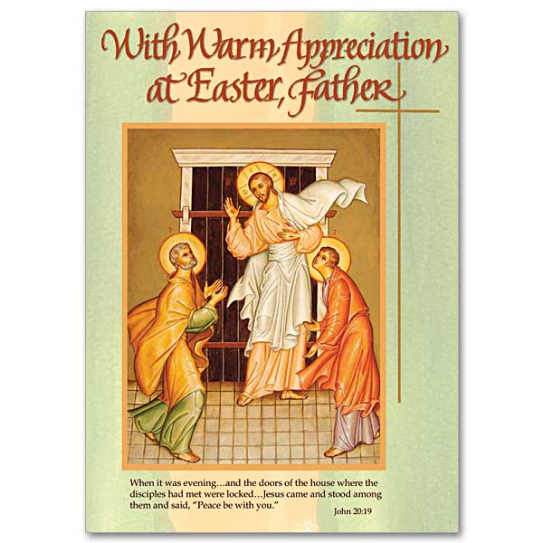 With Warm Appreciation at Easter, FatherWhen it was evening… and the doors of the house where the disciples had met were locked… Jesus came and stood among them and said, “Peace be with you.” John 20:19
