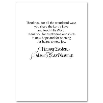 Thank you for all the wonderful ways you share the Lord’s Love and teach His Word. Thank you for awakening our spirits to new hope and for opening our hearts to new joy. A Happy Easter filled with God’s Blessings.Bible Verse:
