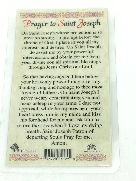 Tarjeta sagrada laminada de San José (plástico cubierto)