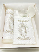Vela blanca de bautismo con oro Espíritu Santo y flores (10 ")