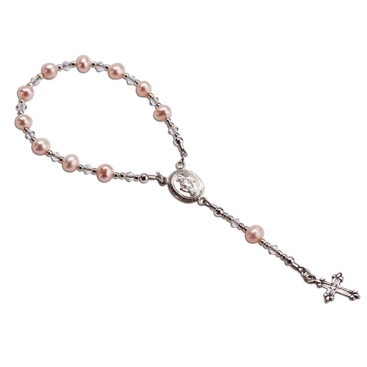 Pulsera de bautismo de la perla de agua dulce de plata de ley