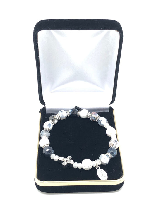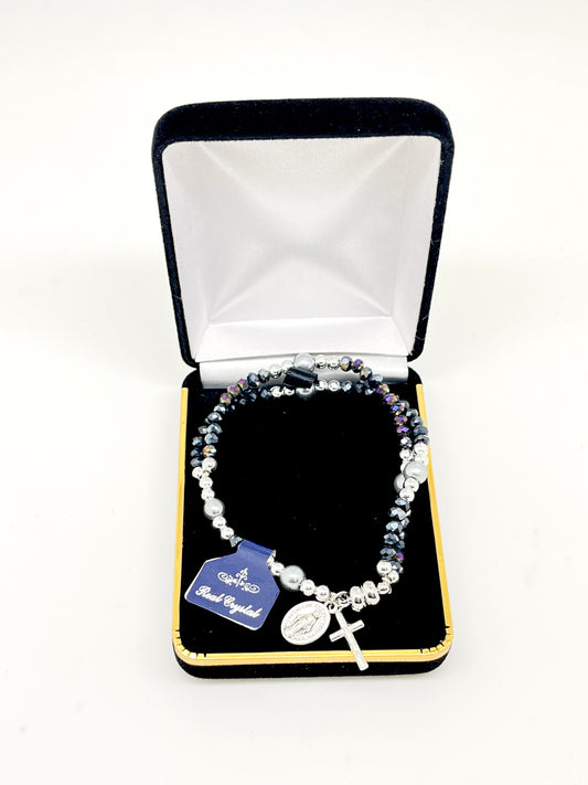 Pulsera de rosario de ónix negro genuino (8 mm)