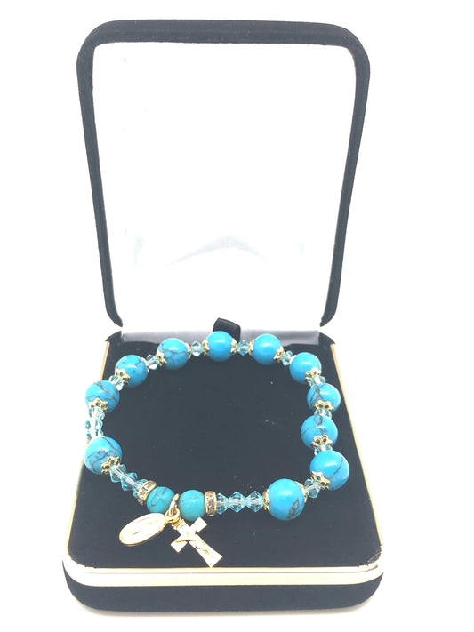 Genuine Turquoise Twist Rosary Bracelet (4 mm)