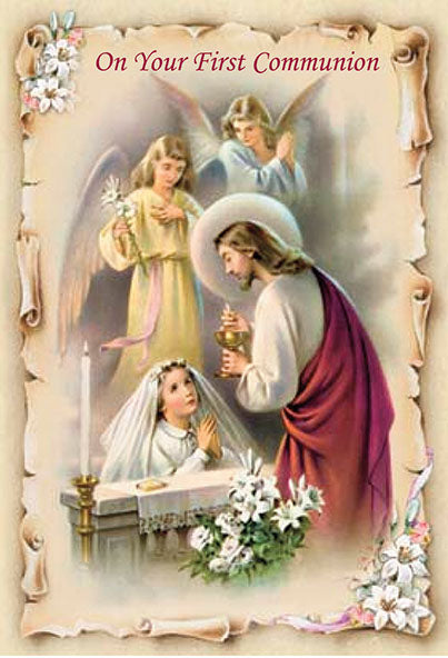 Santo de la Primera Comunión de la Tarjeta de Saludo