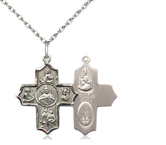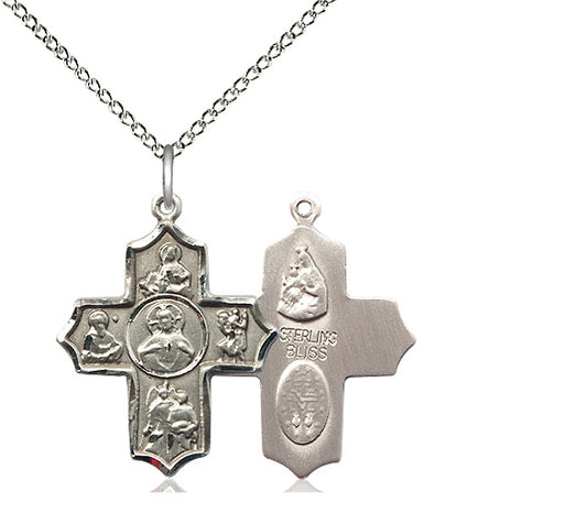 Colgante de 5 vías de Sagrado Corazón de Plata Sterling en una cadena de plata esterlina