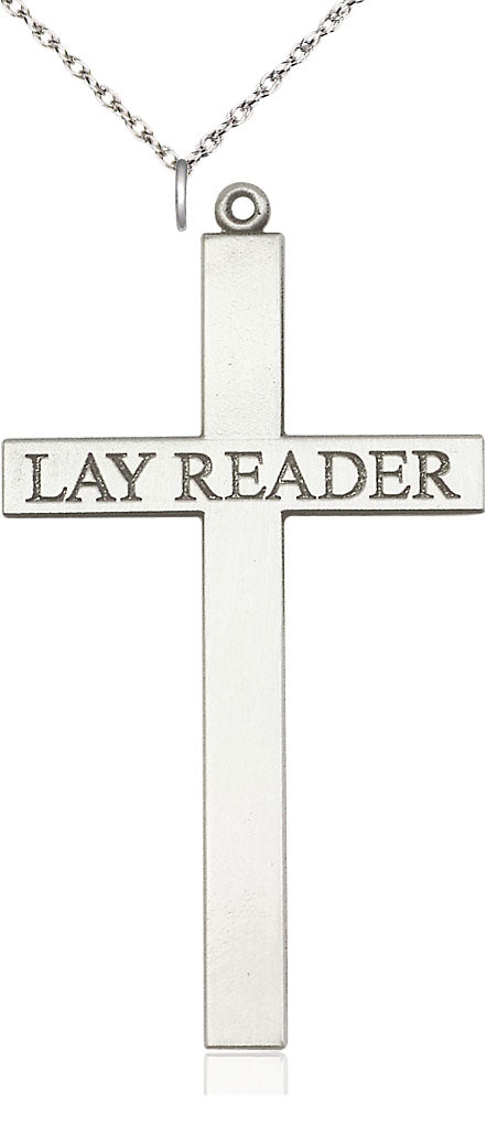 Colgante cruzado de lector de plata esterlina en una cadena de rodio ligero
