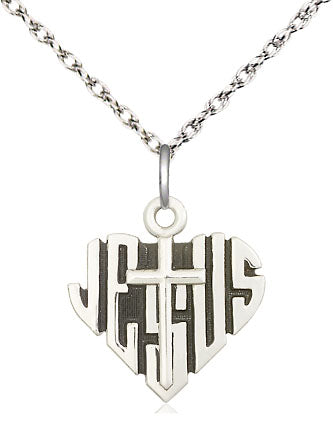 Corazón de plata esterlina de Jesús con medalla cruzada