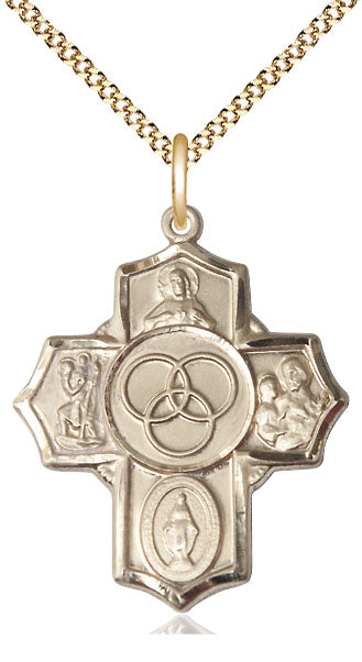 Colgante de 5 vías de la familia mezclada llena de oro de 14kt en una cadena llena de oro