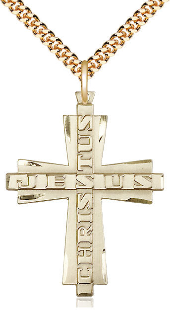 Horago lleno de oro de 14kt de Jesús con colgante cruzado en una cadena llena de oro