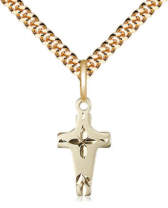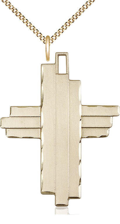 Colgante Cross Cross llenado de oro de 14kt en una cadena de placas de oro