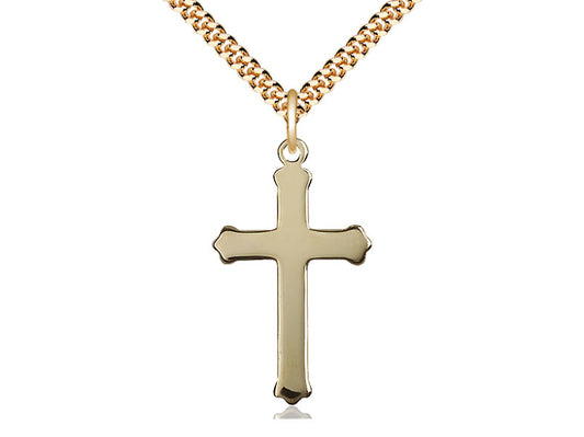 Colgante cruzado lleno de oro de 14kt en una placa de oro de 24 pulgadas cadena de acera pesada