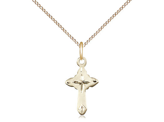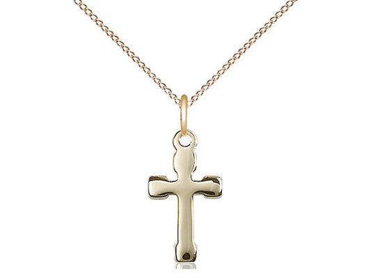 Colgante cruzado lleno de oro de 14kt en una cadena de acera de luz de oro de 18 pulgadas