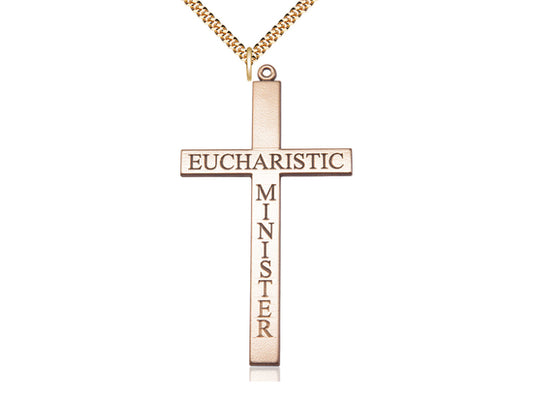 Ministro eucarístico de oro de 14 kt colgante cruzado en una placa de oro de 24 pulgadas Cadena de acera pesada