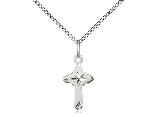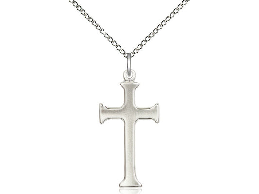 Colgante cruzado de plata esterlina en una cadena de acera de luz de plata esterlina de 18 pulgadas