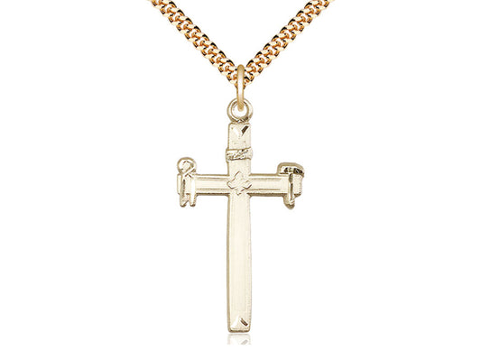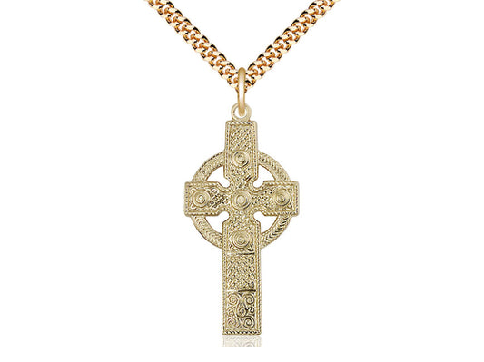 Colgante cruzado Kilklispeen lleno de oro de 14kt en una cadena de acera pesada de placa de oro de 24 pulgadas.