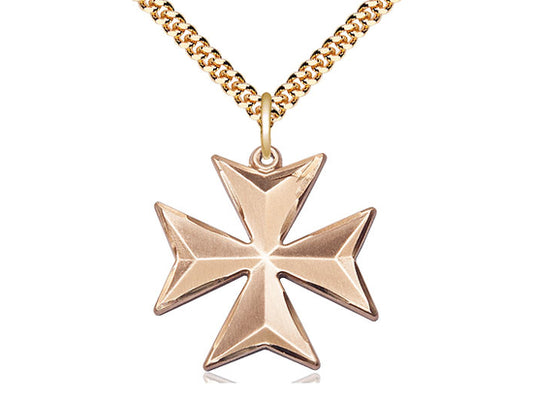 Colgante cruzado maltés lleno de oro de 14kt en una placa de oro de 24 pulgadas cadena de acera pesada