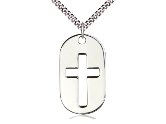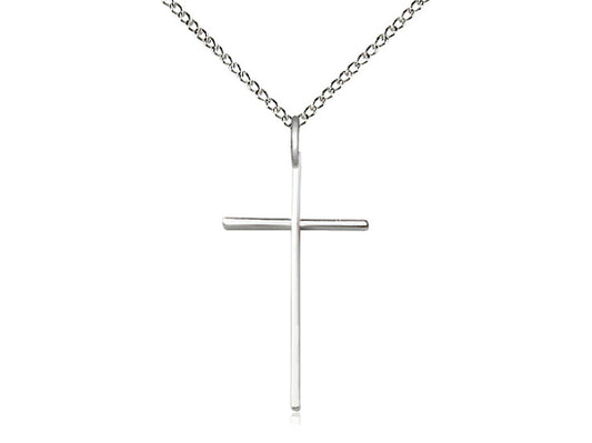 Colgante cruzado de plata esterlina en una cadena de acera de luz de plata esterlina de 18 pulgadas