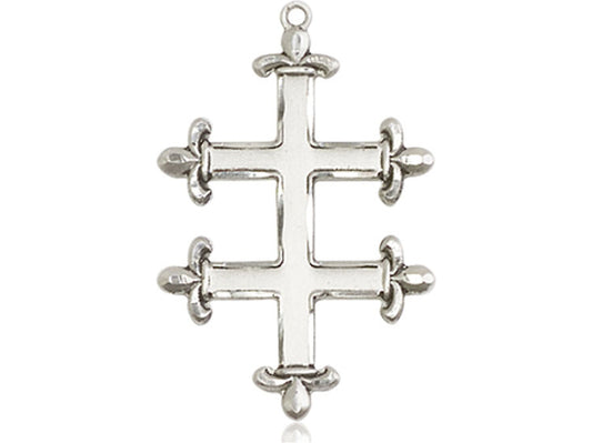 Cruz de plata esterlina del colgante de Lorraine en una cadena de acera pesada de rodio de 24 pulgadas