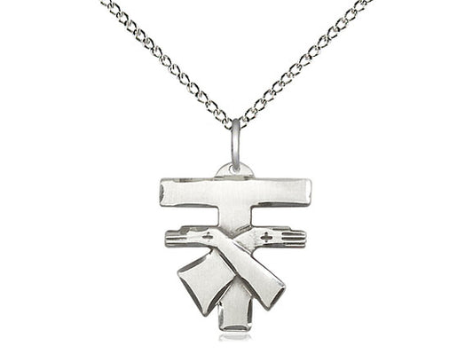 Colgante cruzado franciscano de plata esterlina en una cadena de acera de luz de plata esterlina de 18 pulgadas