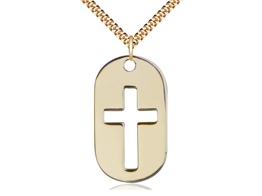 Colgante de etiqueta de perro cruzado de oro de 14kt en una placa de oro de 24 pulgadas Cadena de acera pesada