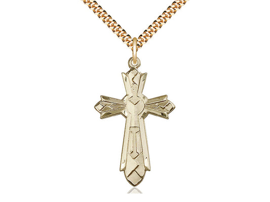 Colgante cruzado lleno de oro de 14kt en una placa de oro de 24 pulgadas cadena de acera pesada