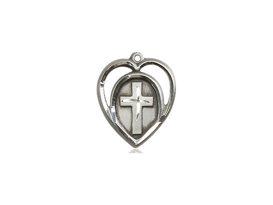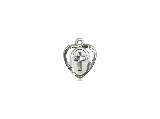 14kt Corazón Lleno de Oro de Jesús w/Cross Medalla.