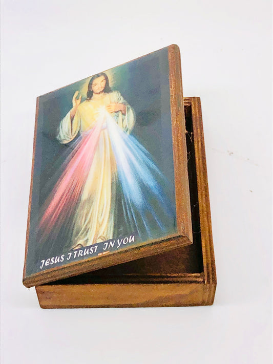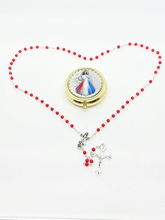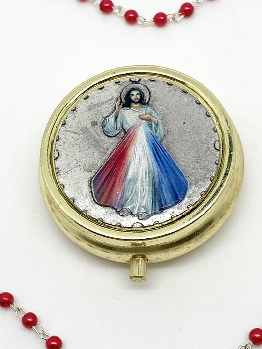 Divine MercyItalian Round Metal Box and Rosary 4mm